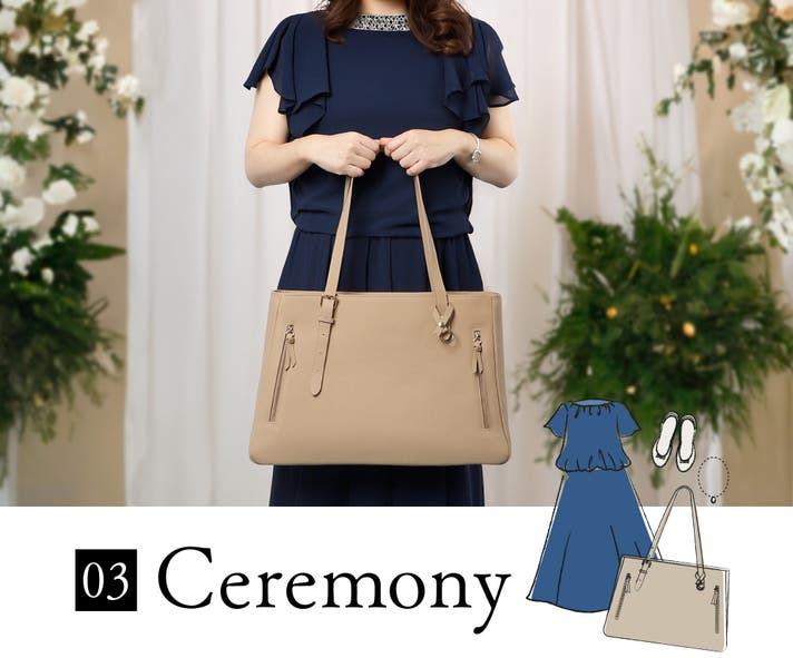 入学式やセレモニーなど、年に数回訪れる“きちんとした場”にも持てる、上品で落ち着いたデザイン。フォーマルな装いに自然に馴染み、A4サイズの書類や記念品もすっきり収納できる容量で、荷物が増えてもスマートに持ち帰れます。“いざという時”にも頼れる存在です。