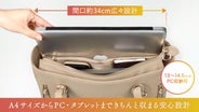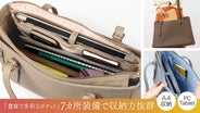 バッグ本体がしっかりと自立する設計のため、オフィスや商談先などでも違和感なくお使いいただけます。中身の取り出しやすさはもちろん、佇まいに上品さを感じ、ビジネスシーンにも最適。