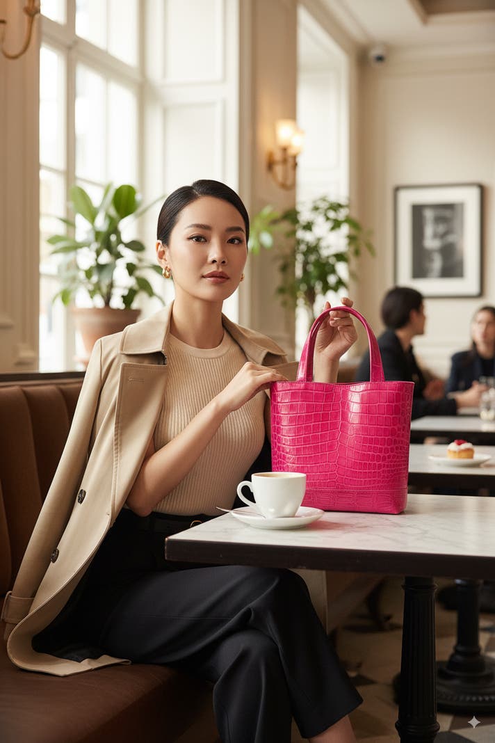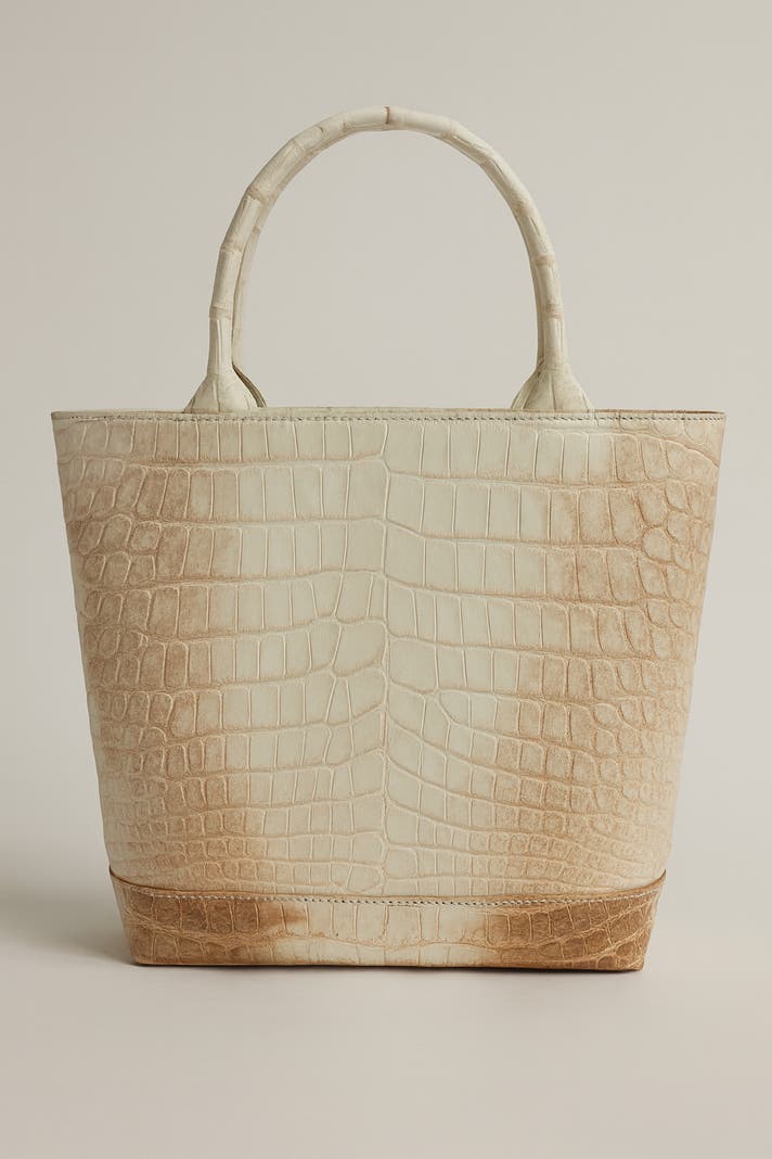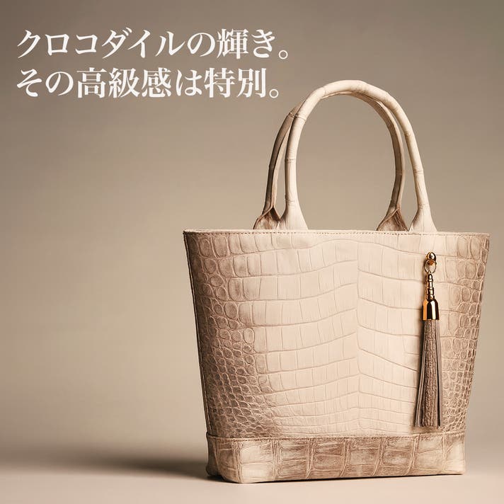 MASAMI Collection のクロコダイルトートバッグは、本物のクロコダイルレザーを贅沢に使用した、特別なミドルトートバッグです。ミニトートよりも一回り大きいサイズ感。スマートなフォルムを保ちながらも、収納力に優れ、日常使いから特別なシーンまで幅広く対応します。