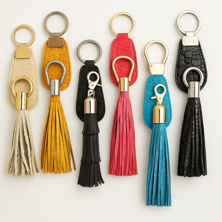 感謝の気持ちを込めて、バッグを1点ご購入いただいた方には、同じクロコダイルレザーで製作したタッセルチャームと靴べらキーホルダー をお付けいたします。