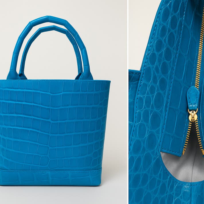 本プロジェクトでは、環境にも配慮した素材でもあるクロコダイルレザーと最新素材を組み合わせた、上質なミドルトートバックお届けいたします。
