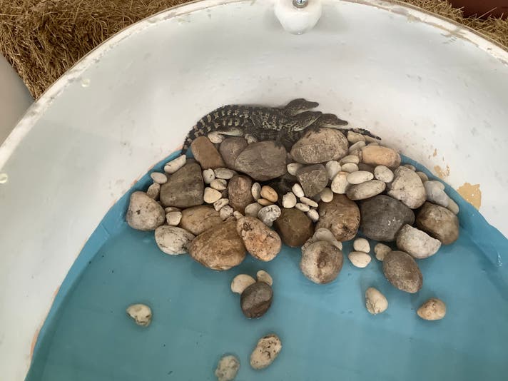 シャムワニ (学名:Crocodylus siamensis)とポロサス/スモールクロコダイル(Crocodylus porosus)の成長過程に大きな違いはありませんが、ポロサスの方が活動的で獰猛な傾向があるようです。また、黒い斑点がシャムワニより全身に多く分布し、斑点同士の間隔も比較的広い方がポロサスです。模様だけでは見分けが難しい場合もあります。