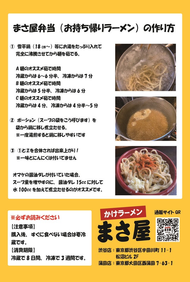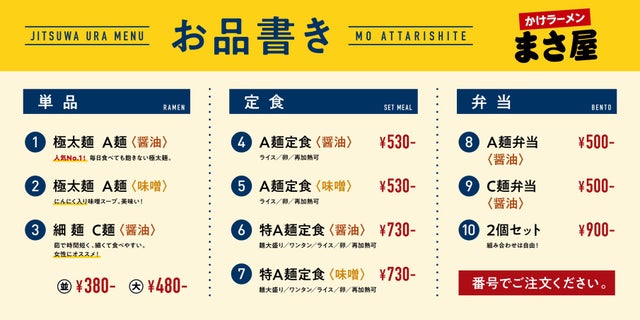 - 年間300食以上のラーメンを食すオーナーが開発したかけラーメン「まさ屋」の限定セット!
