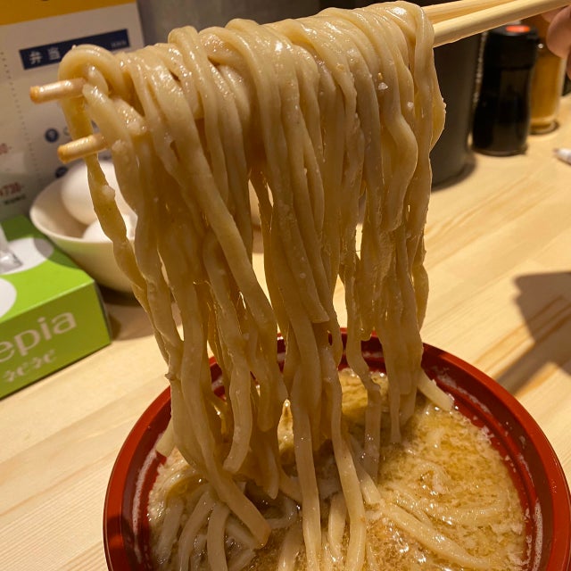 A麺:極太麺 当店人気No.1!毎日食べても飽きない極太麺。