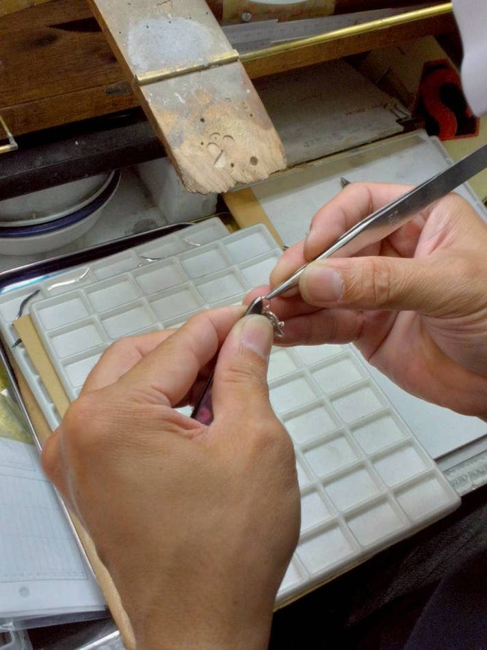 など、一つのジュエリーが完成されるまで、多くの職人の手を渡ります。