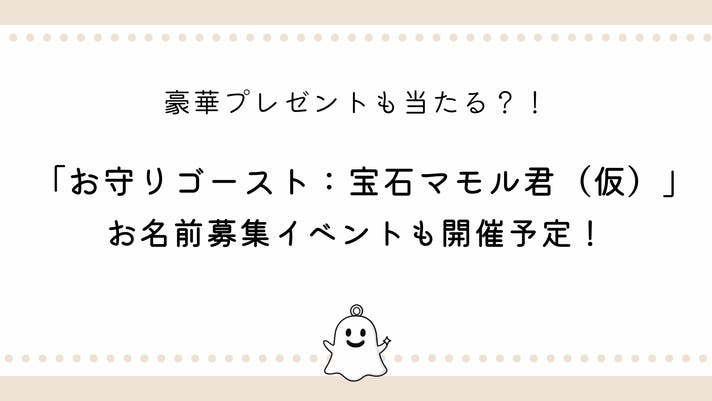 プロジェクト開催中、まだ仮名のままになっているお守りゴースト:宝石マモル君のネーミング募集キャンペーンを開催します。