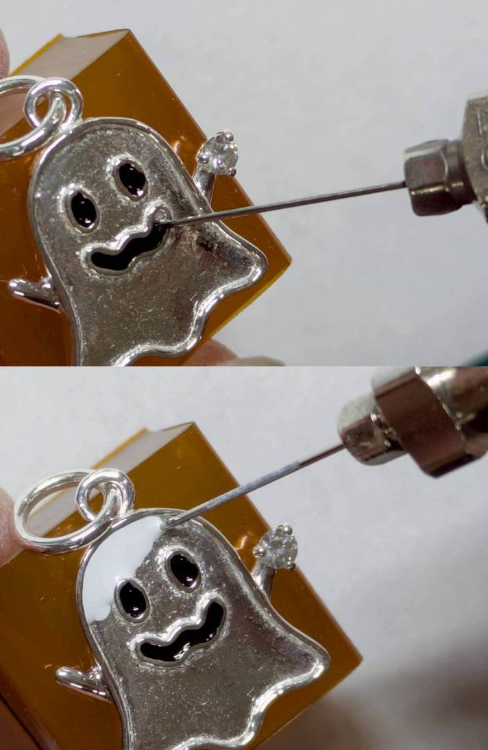 そして、お守りゴーストのカラーリングは、「エナメル加工」にて手作業で色付けを行なっています。