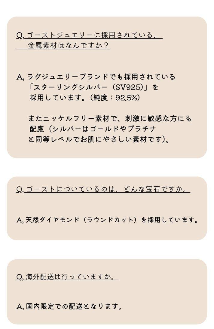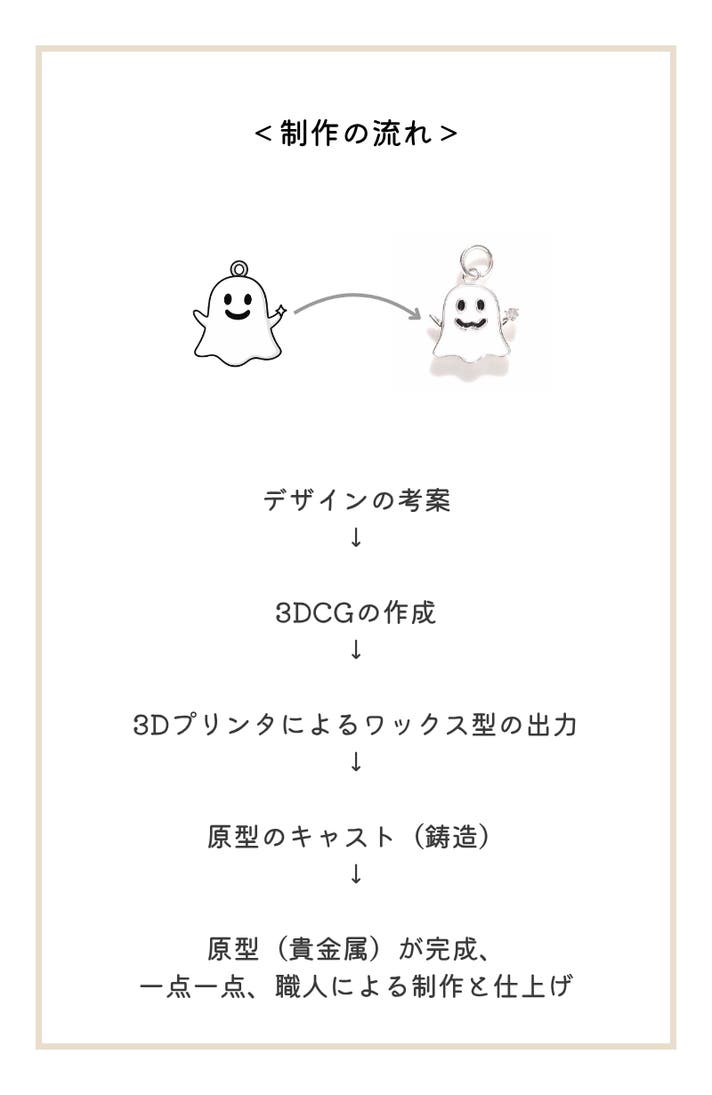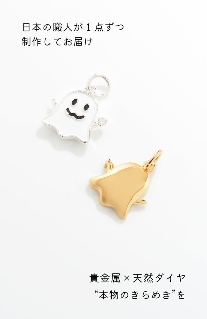 にっこりかわいいお守りゴーストデザインのメタル素材には、ジュエリーとして世代を超えてお楽しみいただける素材のみを採用しています。