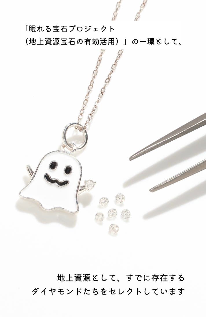 - ポップで可愛いお守りゴーストデザイン×永遠の守護宝石ダイヤモンドのネックレス