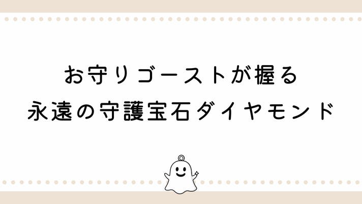 笑顔がカワイイお守りゴーストが、永遠のお守り宝石であるダイヤモンドを持っている、ジュエリースタジオMASHIROの新作ジュエリー。