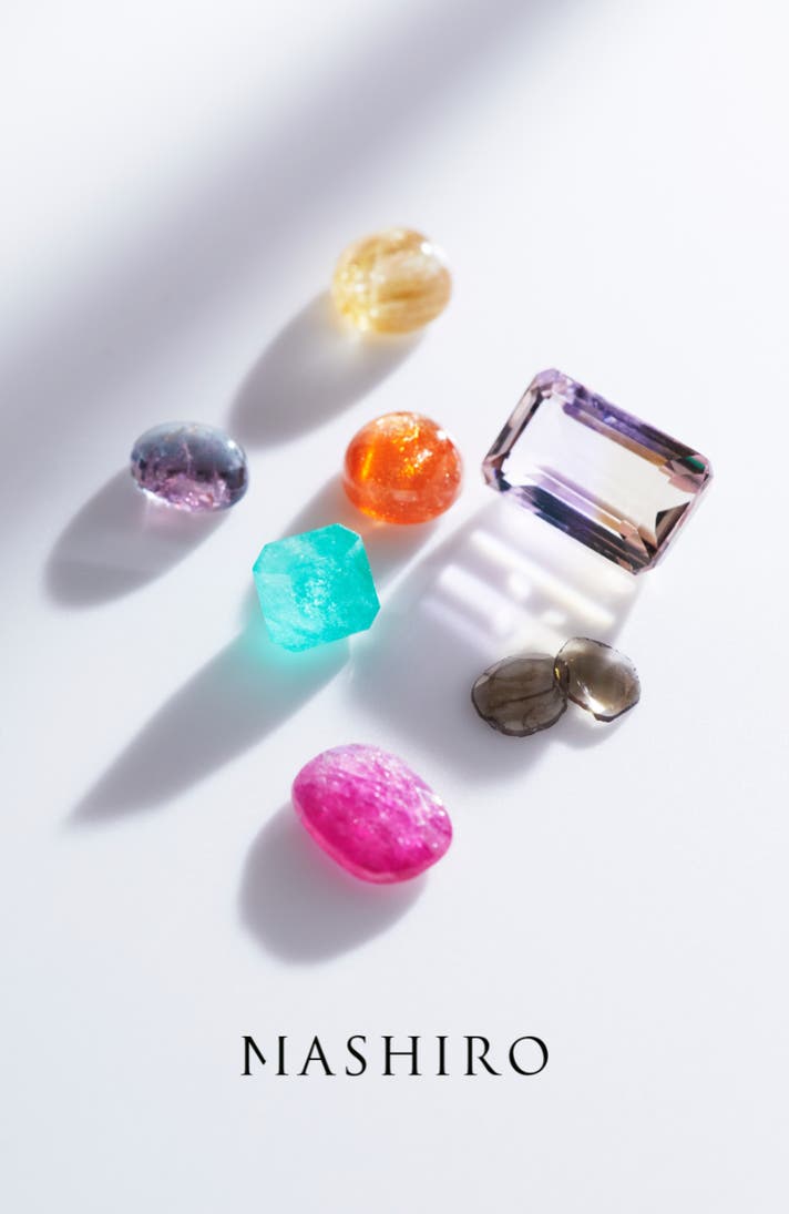 MASHIROのロゴは、宝石の美しいインクルージョンたちからインスピレーションを受けており、全ての要素が未来の美しい輝きを構成することを願って設計されています。