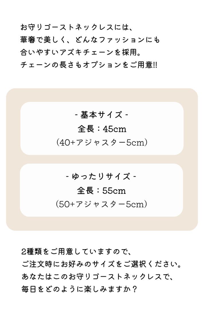 ポップで愛らしいデザインのネックレスなので、毎日のお守りジュエリーとしてはもちろん、ファッションコーデに取り入れてお楽しみいただけます。