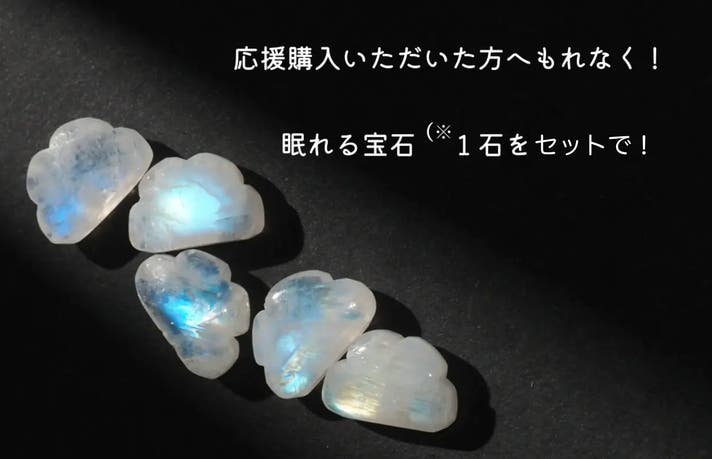 ・各リターン100名様限定にて、レインボームーンストーン・雲カットの宝石をセットでお届けします