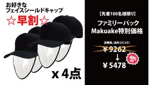 【ファミリーパック特別価格】フェイスシールドキャップ お好きなタイプx4点