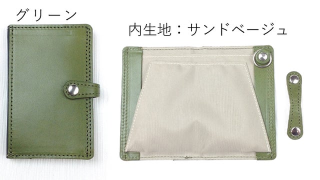↑内生地色:サンドベージュの色は、通常のベージュにうっすらカーキ色が混ざった様な落ち着いた色です。画像では出づらい色ですので、予めご了承下さい。