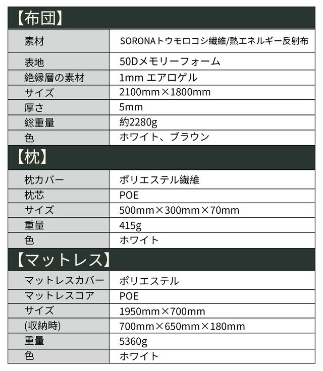 - 宇宙服素材の超断熱「エアロゲル」を採用-196°Cでも断熱可能な布団・寝袋