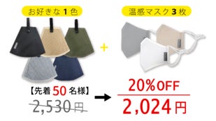 今回はマスクの持ち歩きに便利な MASSTOCK と、6月に発売開始から1週間で25万枚完売した、大人気のひんやりマスクの新商品「あったか温感マスク MASSPOCCA -マスポッカ-」が3枚ついたセットで販売いたします!