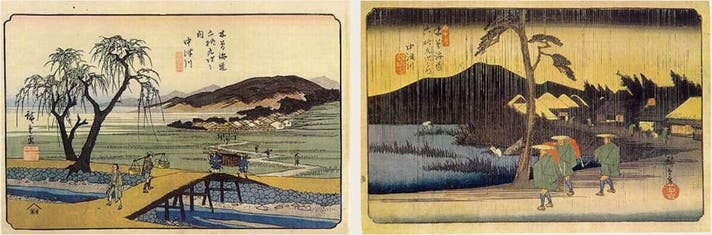 歌川廣重の浮世絵に登場する「中津川宿」の中心地。