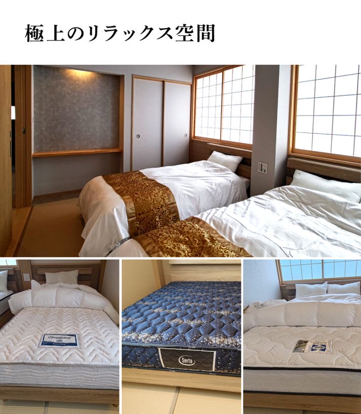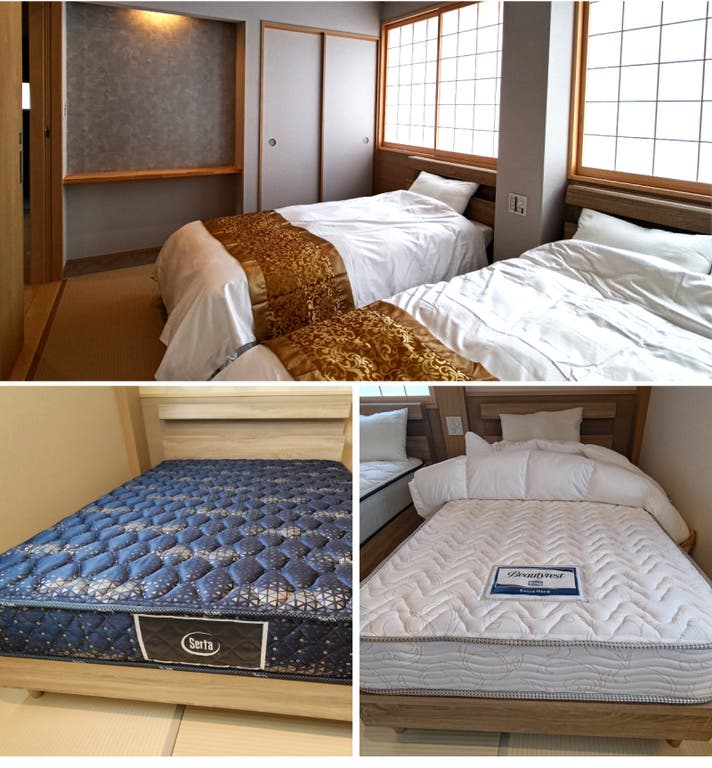 中津川宿桝形屋では、世界的寝具ブランド、「Serta(サータ)」「Simmons(シモンズ)」「TEMPURE(テンピュール)」のベッドをご用意しました。