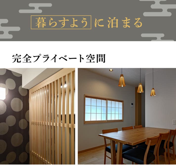 まるで幕末に足を踏み入れたかのような情緒溢れる和モダンなプライベート空間。