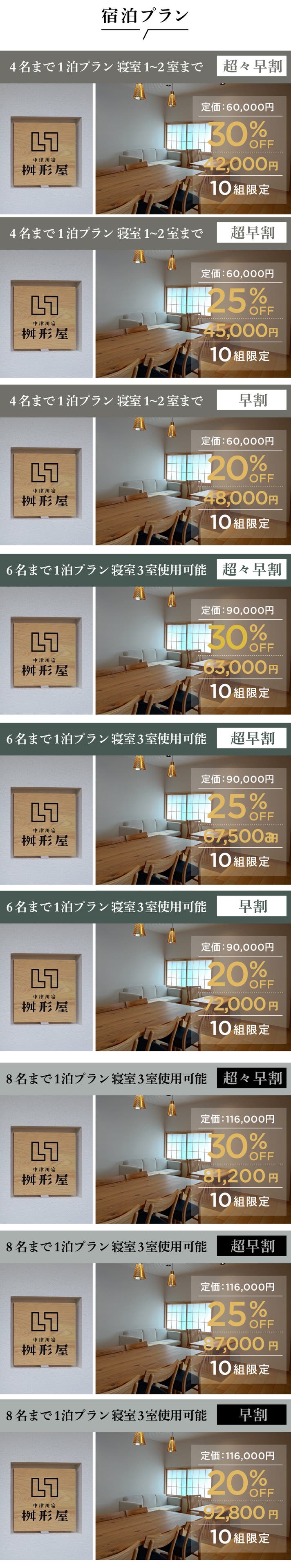 【超早割25%OFF】8名様まで1泊プラン【10組限定】