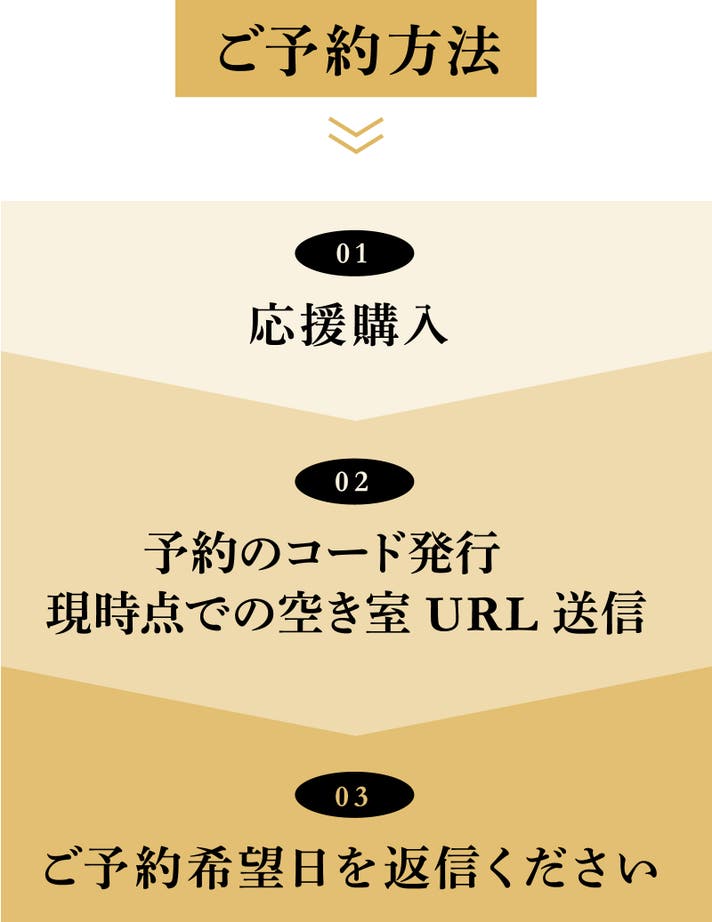 応援購入していただいた方に、順次予約コード及び空き室カレンダーのURLをお知らせ致します。