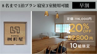 【早割20%OFF】8名様まで1泊プラン【10組限定】