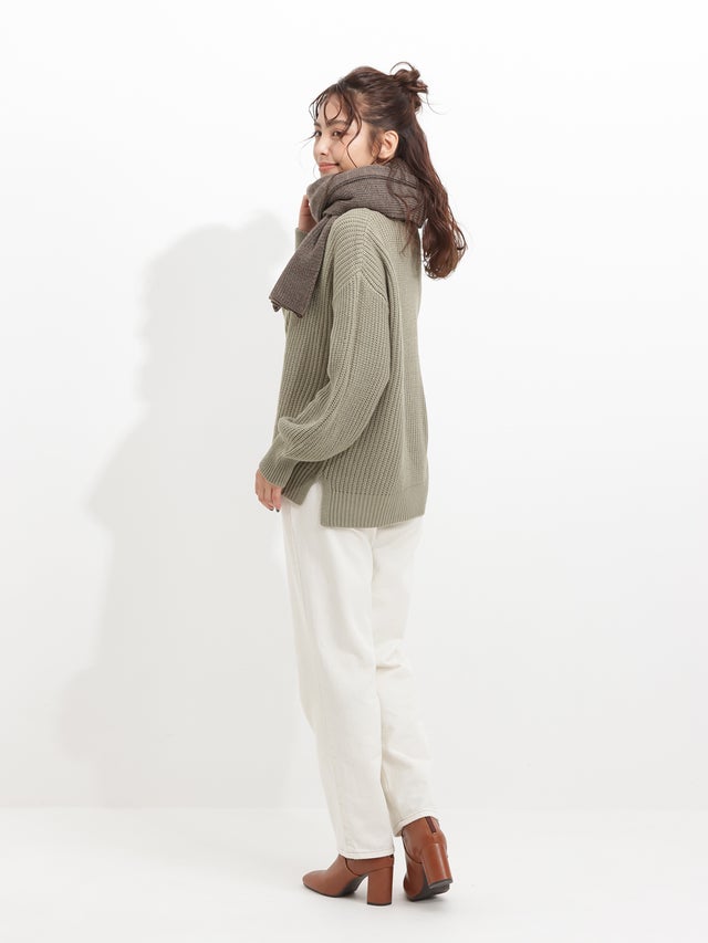 様々な巻き方をお楽しみ頂けるサイズになります。さりげないボリューム感で「カジュアル」は勿論「ジャケットスタイル」でも違和感なくお使いいただけます。