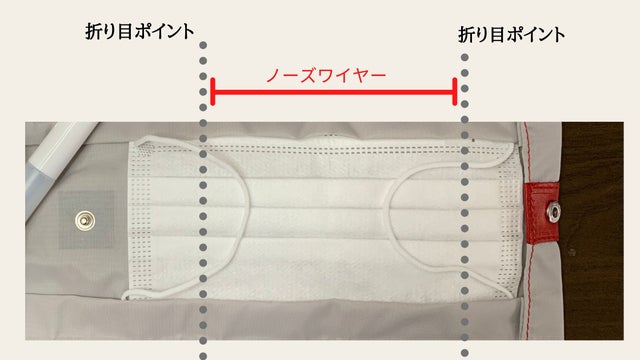 折りたたんでもノーズワイヤーは中央部分が曲がり、端は曲がりにくいようになっています。(マスクの大きさで変わります。)