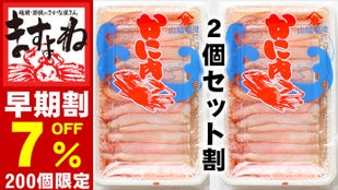 早割の『不凍の日本海産ベニズワイガニ 剥き身棒肉(加熱済)500g』を、2個欲しいならこちらがオトク!