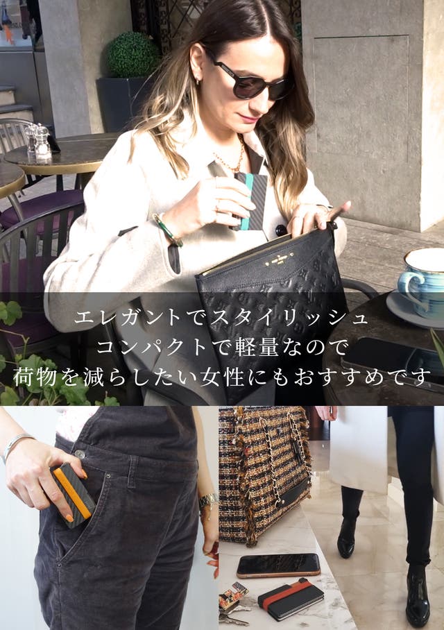 また、強度の高いカーボンファイバー素材を使用しているため、スマホと一緒にポケットに入れても傷が付きにくく目立ちません。