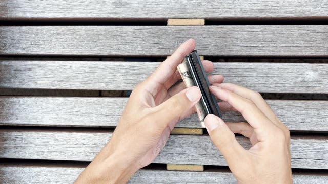 紙幣は折り曲げて、シリコンバンドにはさむこともできます。