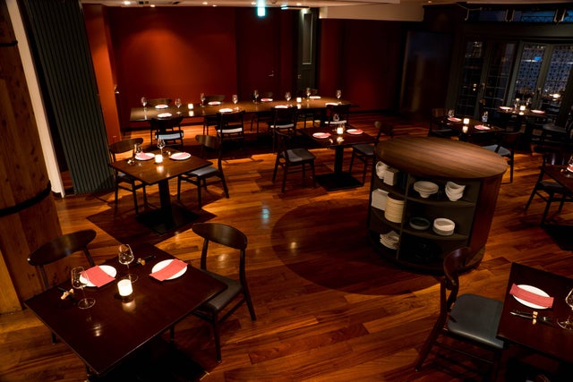テーブル席、カウンター席、個室、テラス、で構成された空間は、ふらっと立ち寄ってグラスワインを一杯という肩ひじ張らないカジュアルな利用から、最大8名様まで対応できる本格的な会食まで、さまざまなシーンに対応できる使い勝手の良さ。