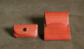 革の質感と木の表情を併せ持つ長濱レザーで作った革小物。