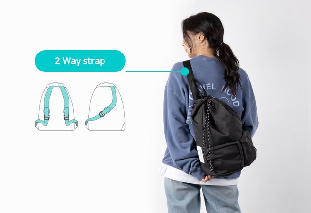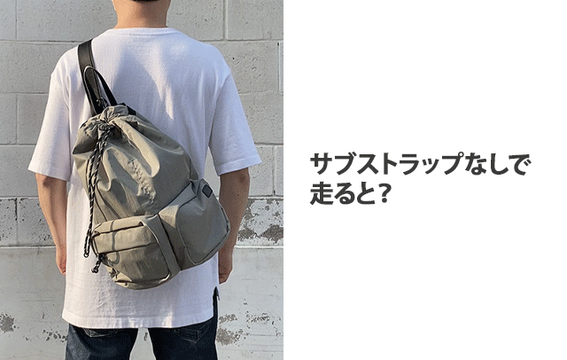分離が可能なストリングを使ってスリングバッグとしても使用が可能になります。スリングバッグにした後、残ったストラップは補助ストラップとして活用ができます。ジョギングや自転車に乗る際にバッグがブラついて不便だった点がサブストラップを身体に合わせて調整することで安定したフィット感を感じることができます。