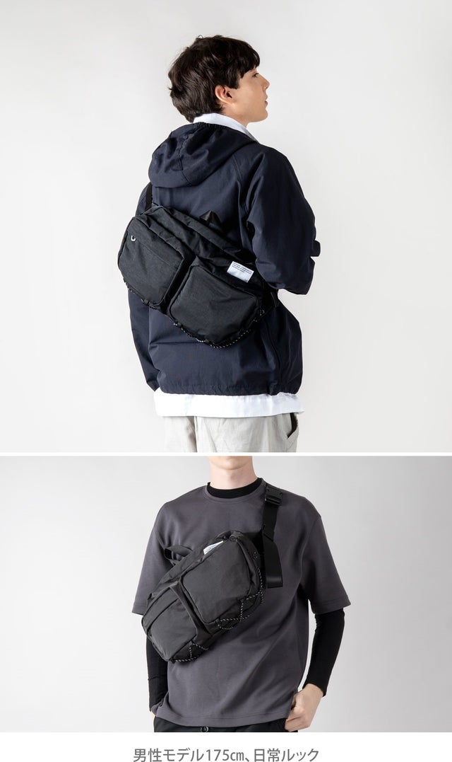 オープンがラクなストリングと使う人の事を考えた収納構成で使いながら便利さを感じることができます。状況によってバックパックからスリングバッグに変えてサブストラップを活用すれば激しい運動や走って移動している際にもストラップ調整で身体にしっかりフィットさせることができ、安定したフィット感を感じることができます。