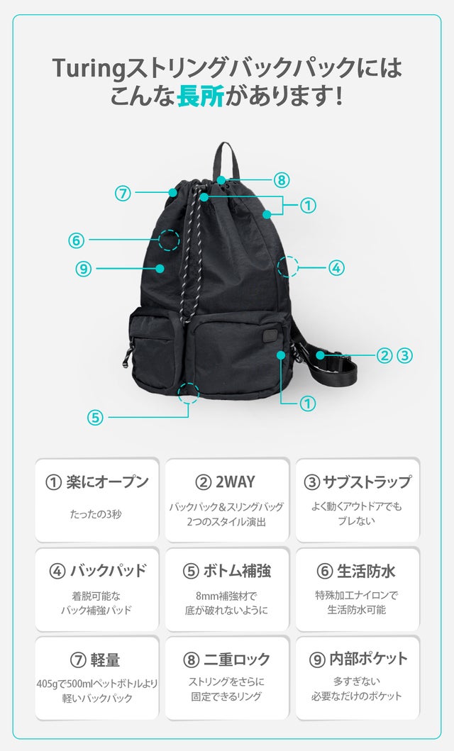 【早割15%オフ】30名様限定・Turing 2WAYストリングバックパック1個