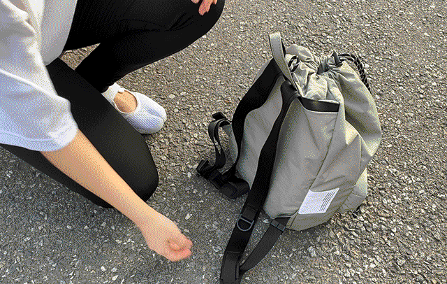 バッグを背負っている状態で持ち物を取り出すことができます。