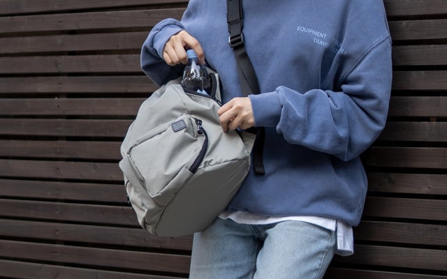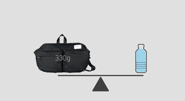 持ち物の重さにプラスしてバッグ自体が重いとかなり負担。Turing sling bagは500mlのペットボトルより軽い330gで肩への負担を減らしてくれます。