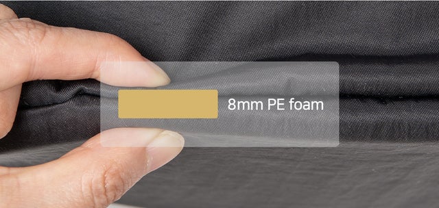 厚み8mmのボトム補強材はバッグを弛みにくくし、床にも立たせたまま置くことができるようにしてくれます。