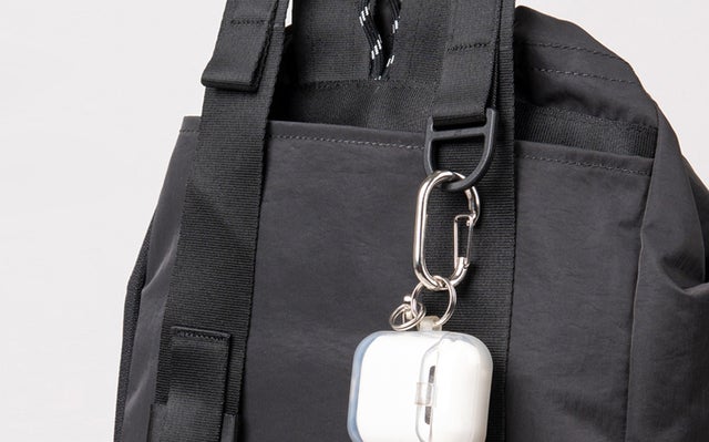 キャップやサングラス、カラビナやAirPodsなど、よく使うものを取り付けることができるDリングはあります。