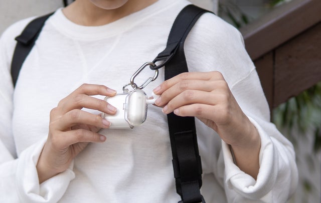 カラビナやイヤホンなど日常生活で良く使う小物を引っ掛けられる実用的なバンドが側面についています。