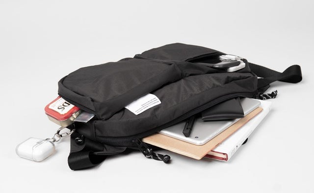 スリングバッグとして使う際に使用しないストラップを収納して整理することができます。また、本をメイン収納とは別に収納する際に活用してみてください。