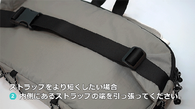 ①残ったショルダーストラップは背面ポケットに収納してください。