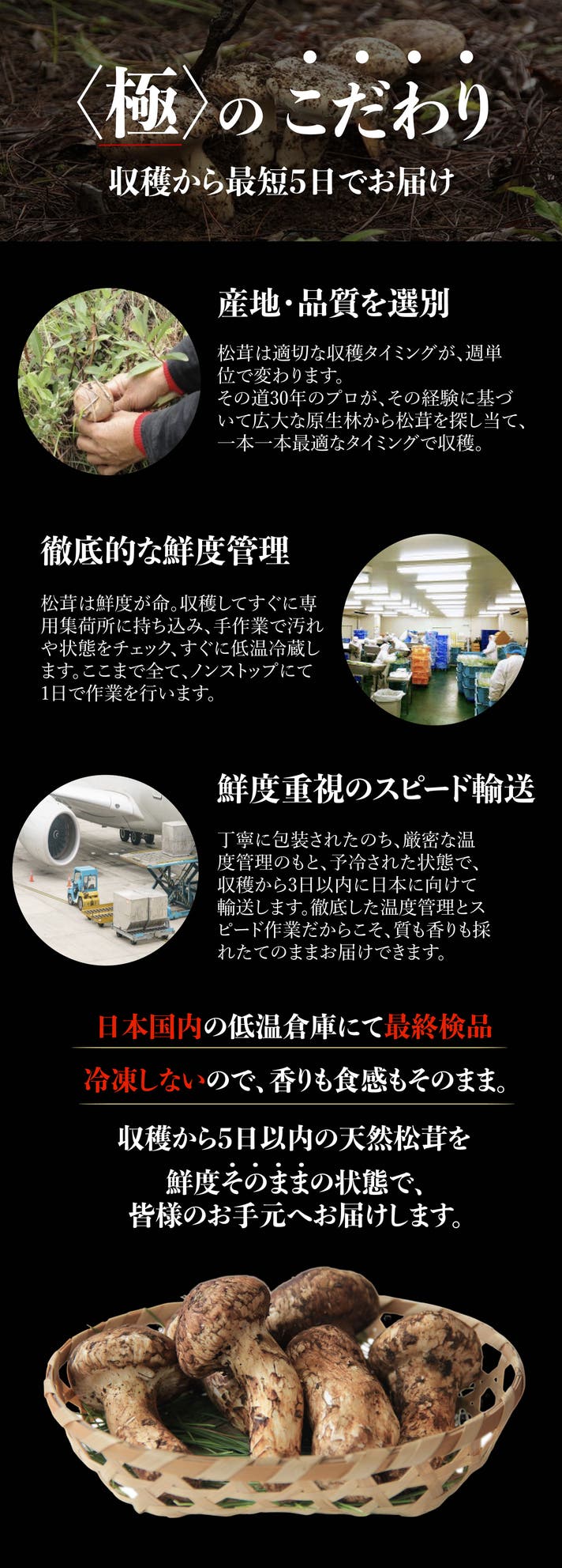 - 【気品に満ちた香りと食感】高級料亭のプロが認めた生松茸を採取から最短5日でスピード直送!