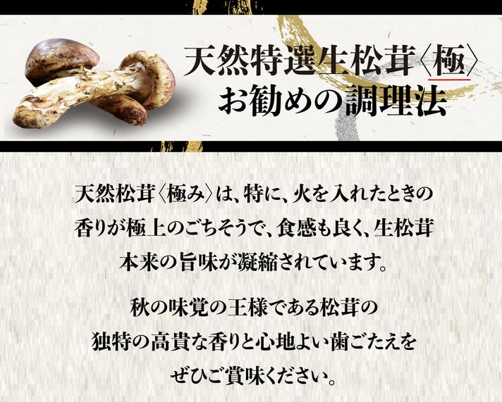 ※本品は生鮮食品(松茸)のため、到着後はできるだけお早めにお召し上がりください。