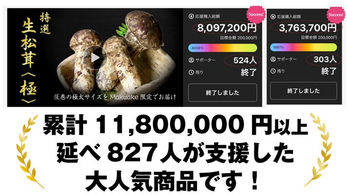 「Makuake(マクアケ)」は、実行者の想いを応援購入によって実現するアタラシイものやサービスのプラットフォームです。このページは、 フードカテゴリの 「【アンコール】世界最大級の松茸産地直送!元プロが届ける「生松茸〈極〉」第二弾」プロジェクト詳細ページです。