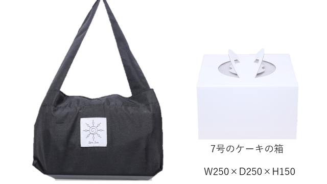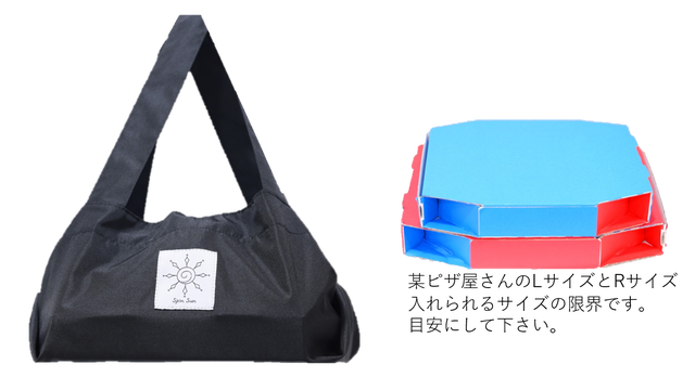 Matiaru!はユニセックスで使えるデザインで通常はトートバッグのような形で使いますが、ケーキの箱、ピザ、お弁当などを平行に保てる工夫をしています。