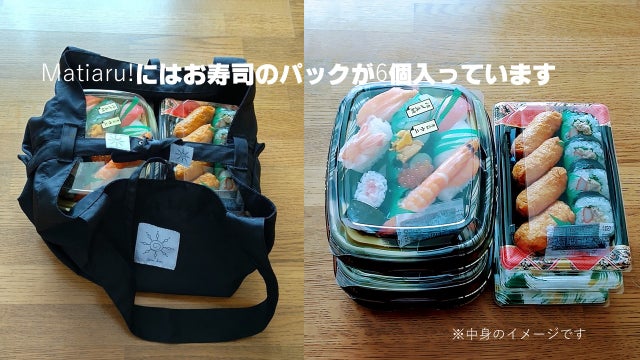 Matiaru!(実用新案登録済)はお買い物の時に買ったお寿司お弁当が家に帰って開けたら具が全部寄って残念な事になっていたのを解消しようと考えたエコバッグです。大きめの物も平行に保てます。