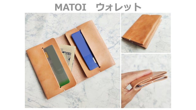 無駄な裁縫、金具は一切なくし、メタルフリーなウォレットになっています。カード、紙幣などを包み込んで纏うようなイメージから、『MATOI』と名付けました。
